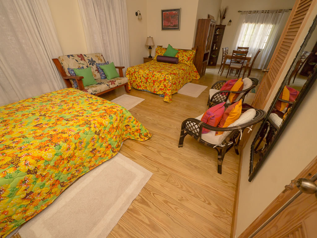 We offer five (5) rooms comprising two suites and three single rooms which are all air-conditioned, have wireless internet access, and provide for a comfortable stay.